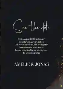 Elegante Save-the-Date-Karte zur Hochzeit in Dunkelgrau mit goldenen Klecksen in Wasserfarbenoptik als moderne Bogenkarten.
