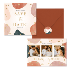 Hippe Save-the-Date-Karte zur Hochzeit mit organischen, geometrischen Formen. (Für quadratische Karten fallen extra Portokosten an.)