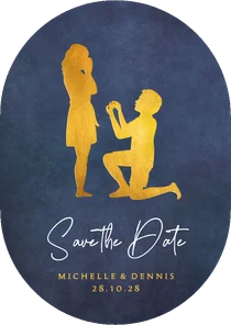 Dunkelblaue Verlobungskarte mit Scherenschnitt-Paar in goldenem Foliendruck (wahlweise). Die Innenseite kann frei gestaltet werden!