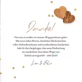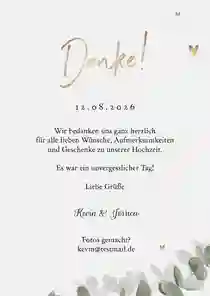 Du möchtest dich nach deiner Hochzeit für alle Aufmerksamkeiten bedanken? Auch das geht mit unseren modernen Dankeskarten zur Hochzeit. Füge hier je nach Wunsch eigene Fotos und moderne Dankessprüche zur Hochzeit hinzu.