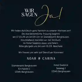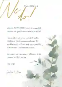 - Passe alle Texte auf der modernen Hochzeitskarte an. Vergiss deine Namen und das Hochzeitsdatum nicht!