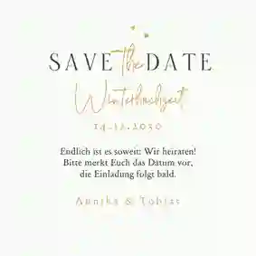 • Passe alle Texte auf der modernen Hochzeitskarte an. Vergiss deine Namen und das Hochzeitsdatum nicht!
