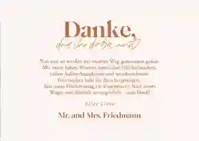 Du möchtest dich nach deiner Hochzeit für alle Aufmerksamkeiten bedanken? Auch das geht mit unseren modernen Dankeskarten zur Hochzeit. Füge hier je nach Wunsch eigene Fotos und moderne Dankessprüche zur Hochzeit hinzu.