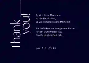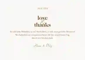 Du möchtest dich nach deiner Hochzeit für alle Aufmerksamkeiten bedanken? Auch das geht mit unseren modernen Dankeskarten zur Hochzeit. Füge hier je nach Wunsch eigene Fotos und moderne Dankessprüche zur Hochzeit hinzu.
