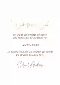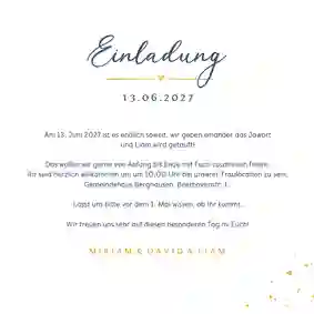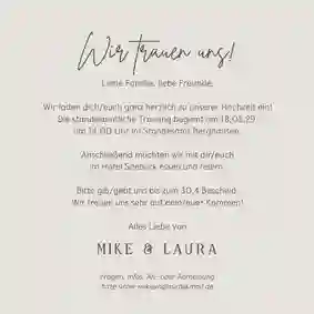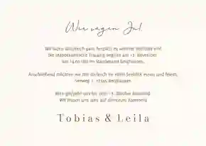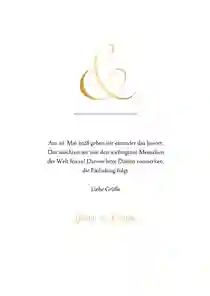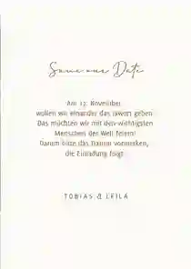 Nur weil deine Hochzeitseinladung schlicht ist, heißt das nicht, dass du damit keine Liebe versprühst. Die Details verwandeln deine Botschaften in Glücksmomente: Zwei aufeinander abgestimmte Schriftarten, edle Hochzeitssymbole oder dein Lieblingsbild reichen aus. Und das Beste?