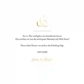 Der Stil deiner Hochzeit kann trotz schlichten Hochzeitseinladungen modern, klassisch oder vintage sein. Oder gerade deswegen. Weil dir der Gestaltungsweg für deine Feier mit schlichten Hochzeitskarten offen steht.