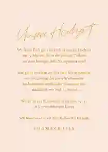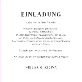 Nur weil deine Hochzeitseinladung schlicht ist, heißt das nicht, dass du damit keine Liebe versprühst. Die Details verwandeln deine Botschaften in Glücksmomente: Zwei aufeinander abgestimmte Schriftarten, edle Hochzeitssymbole oder dein Lieblingsbild reichen aus. Und das Beste?