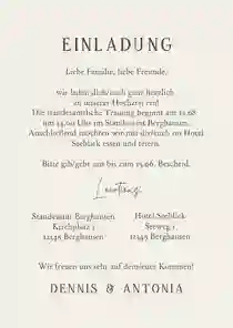 Der Stil deiner Hochzeit kann trotz schlichten Hochzeitseinladungen modern, klassisch oder vintage sein. Oder gerade deswegen. Weil dir der Gestaltungsweg für deine Feier mit schlichten Hochzeitskarten offen steht.