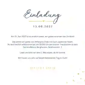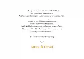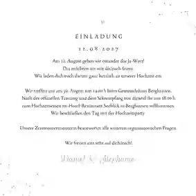 Nur weil deine Hochzeitseinladung schlicht ist, heißt das nicht, dass du damit keine Liebe versprühst. Die Details verwandeln deine Botschaften in Glücksmomente: Zwei aufeinander abgestimmte Schriftarten, edle Hochzeitssymbole oder dein Lieblingsbild reichen aus. Und das Beste?