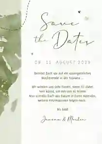 Hochzeitskartenset Aqaurell Weltkarte und Flugzeug in Grün