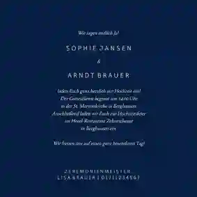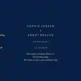 Hochzeitskartenset einfache Goldschrift auf Dunkelblau