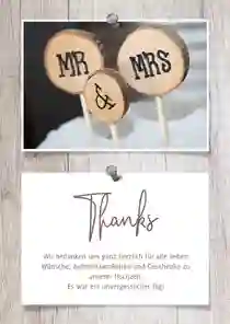 Hochzeitskarten mit Fotocollage auf rustikalem Hintergrund.