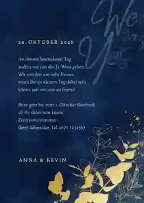Hochzeitskartenset goldener Eukalyptus auf Dunkelblau
