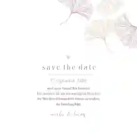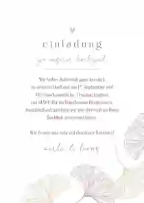 Schlichtes Hochzeitskartenset mit feinen Ginkgoblättern