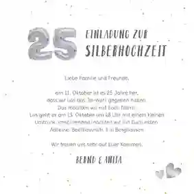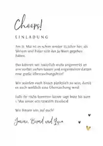 Eine Jubiläumskarte mit Foto zur Silberhochzeit kann beispielsweise mit silbernen Stickern und Rahmen verziert werden. Füge eine große 25 hinzu oder den Satz ‘25 Jahre verheiratet’. So wissen die Empfänger direkt, was der Anlass deiner Jubiläumskarte mit Foto ist. Auch die Fotos lassen sich mit Fotoeffekten bearbeiten, heranzoomen und verschieben.