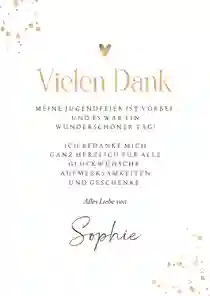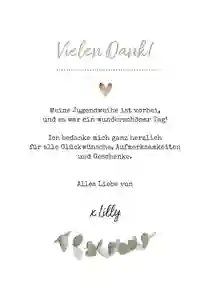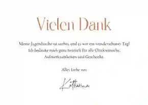 Tipp: Gestalte deine Dankeskarten im selben Design wie deine Einladungskarten zur Jugendweihe. So haben die Karten Wiedererkennungswert und ergeben eine schöne Einheit.