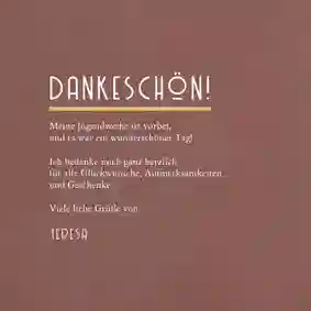 Du hast eine unvergessliche Jugendweihe gefeiert? Großartige Geschenke bekommen? Und fühlst dich ab sofort so richtig erwachsen? 😉 Dann zeig deine Dankbarkeit und schick Dankeskarten zur Jugendweihe an alle, die diesen Tag unvergesslich gemacht haben.