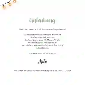 Fröhliche Dankeschönkarte zur Jugendweihe mit eigenem Foto und Holzschild. Vorlage ganz nach Wunsch bearbeiten!