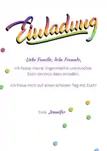 Moderne Danksagung für die Jugendweihe mit Lettering und buntem Konfetti. Die Karte bietet viel Platz für Fotos - einfach zu personalisieren.