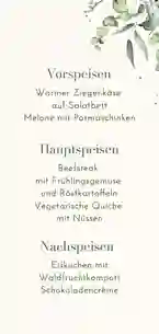 Dankeskarte zur Jugendweihe in modern-klassischem Look mit eigenen Fotos, Zweigen und – wahlweise – Namen in goldenem Foliendruck.