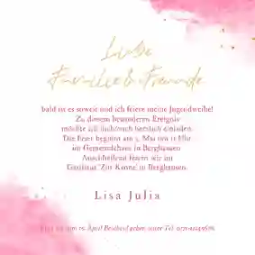 Menükarte zur Jugendweihe Rosa Aquarell