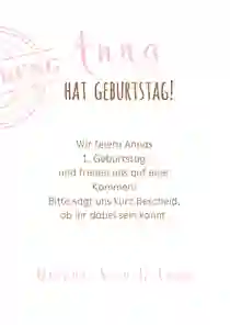 💕 Tipp: Du bist zu einem ersten Geburtstag eingeladen oder kennst jemanden, der demnächst 1 Jahr wird? Dann überrasche ihn oder sie doch mit einer personalisierten Glückwunschkarte zum 1. Geburtstag.