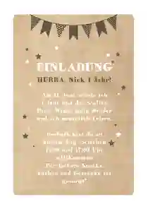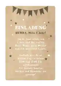 - Bestelle deine Einladungen zu dir nach Hause und fülle die Umschläge mit Konfetti, bevor du die Karten verteilst. Für eine kleine extra Überraschung beim Öffnen 🎊.