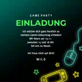 Kinder, die 9 Jahre werden, haben so ihre eigenen Vorstellungen von einer tollen Einladungskarte. Sie wollen ihre Welt auf der Einladung zeigen! Das kann ein Hobby sein oder natürlich das Thema, das zum Motto am Kindergeburtstag ausgewählt ist. Eine Einladung zum Kindergeburtstag auf dem Reiterhof, auf dem Fußball-Platz, eine Einladung zum Nachmittag unter eleganten Meerjungfrauen oder kreativen Minecraft-Gamern… beliebte Themen unter Neunjährigen! Für all diese unterschiedlichen Wünsche gibt es Einladungskarten bei Send a Smile.