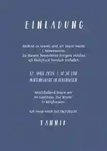 🩵 Tipp: Lass deinen Sohn bei der Auswahl der Karte mitentscheiden. So trifft ihr garantiert die richtige Wahl und erstellt gemeinsam eine Einladung, die noch lange in Erinnerung bleiben wird.