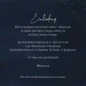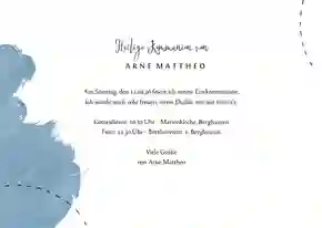 🩵 Tipp: Gestalte passend zu der Kommunion Einladung deines Jungen auch Menükarten und Dankeskarten im selben Design.