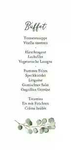 Dankeskarte zur Kommunion auf Kraftpapier mit Platz für 2 Fotos und Eukalyptuszweigen. Passe die Vorlage ganz nach eigenen Wünschen an.