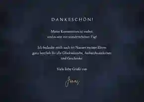 Menükarte zur Kommunion in Dunkelblau mit Elementen in goldenem Foliendruck (wahlweise). Alle Texte lassen sich persönlich bearbeiten!