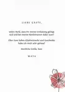 „Ein herzliches Dankeschön, dass du meinen Konfirmationstag verschönert hast. Mit so lieben Menschen wie dir macht es riesen Spaß zu feiern.“