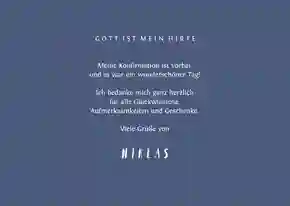 „Mit euch wurde mein Konfirmationstag zum Festtag. Vielen Dank, dass ihr dabei wart, für die tollen Geschenke und die lieben Worte.“