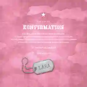 Danksagung zur Konfirmation in rosa Militarylook mit Fotos. Einfach eigene Fotos und Texte einsetzen!