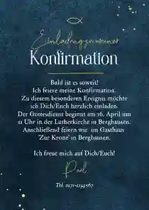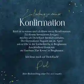 Elegante Danksagung zur Konfirmation mit eigenem Foto und echter Goldschrift (wahlweise) auf Dunkelblau.