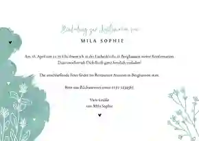Hippe Menükarte zur Konfirmation mit Farbklecksen und Blumen. Nur noch eigene Speisen auf der Rückseite eintragen.
