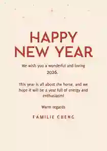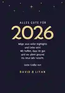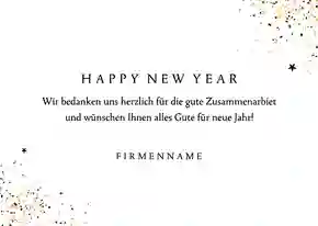 Auf geschäftlichen Neujahrskarten an Partner, Kunden und Mitarbeiter bedankst du dich für die Zusammenarbeit im vergangenen Jahr und wünschst viel Erfolg für 2026. Finde die Balance zwischen persönlichen und professionellen Worten. Eine warme, aber angemessene Tonalität kommt immer gut an.