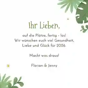 Die Lieferzeit beträgt anschließend 1-4 Werktage. Bitte beachte, dass der 1. Januar ein Feiertag ist, an dem keine Post verschickt oder zugestellt wird. Plane deine Bestellung am besten einige Tage vor Silvester, damit deine Neujahrskarten 2026 rechtzeitig ankommen.