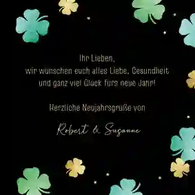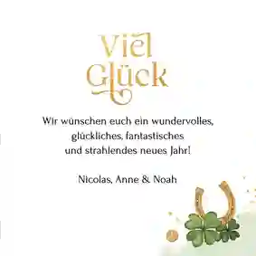 Deine Neujahrskarte als kleiner Glücksbringer: Mit Kleeblättern, Marienkäfern, Hufeisen oder Glücksschweinen wünschst du deinen Liebsten besonders viel Glück für das neue Jahr.