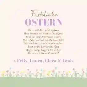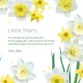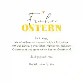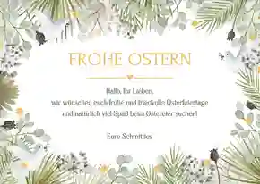 Verschicke ein Lächeln! Überrasche deine Liebsten mit einem persönlichen Ostergruß, der direkt zu ihnen nach Hause geliefert wird. Mit unserem praktischen Versandservice gestaltest du deine Osterkarte ganz einfach online und wir übernehmen den Rest.
