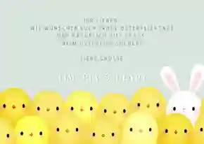 Neben dem christlichen Kontext steht Ostern vor allem auch für ein fröhliches Frühlingsfest. Entdecke bei uns Grußkarten mit Motiven wie bunten Blumen, lustigen Osterhasen oder süßen Küken. Die lustigen Osterkarten bringen die Freude des Osterfests direkt in die Briefkästen deiner Liebsten.