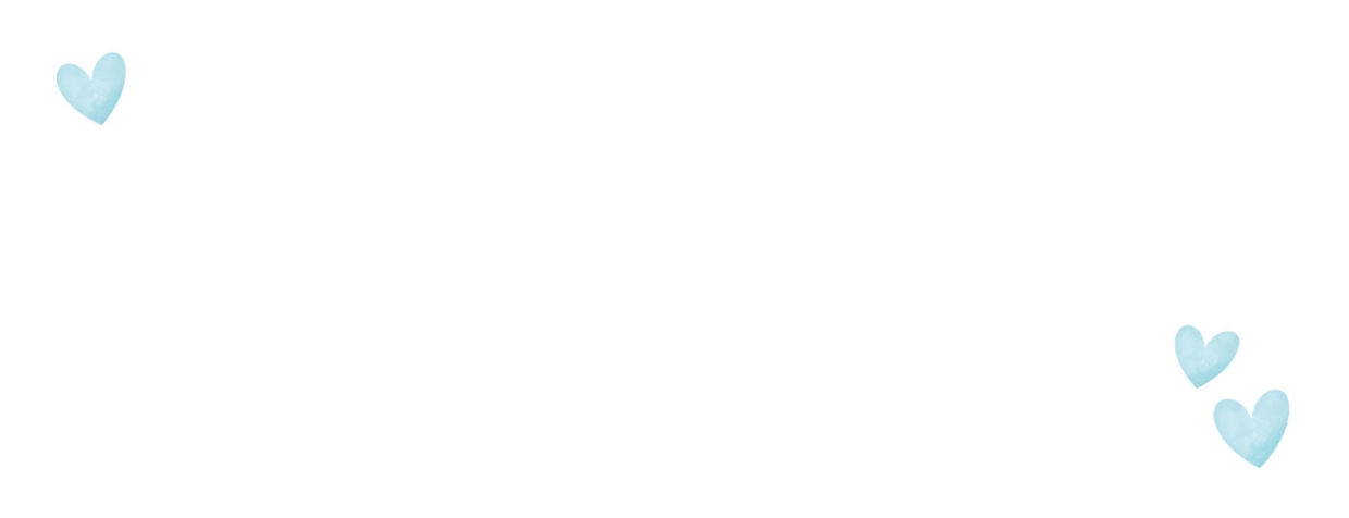 Weißer Adressaufkleber mit drei hellblauen Herzchen.