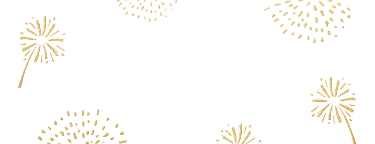 Weißer Adressaufkleber mit Feuerwerk in Goldoptik.