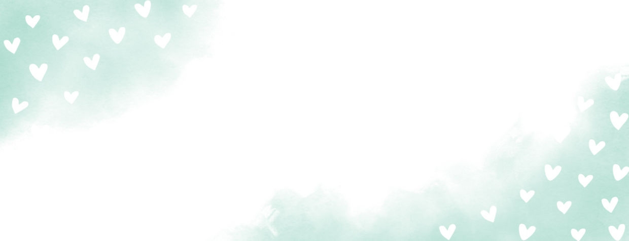 Adressaufkleber mit weißen Herzchen auf mintgrüner Wasserfarbe.