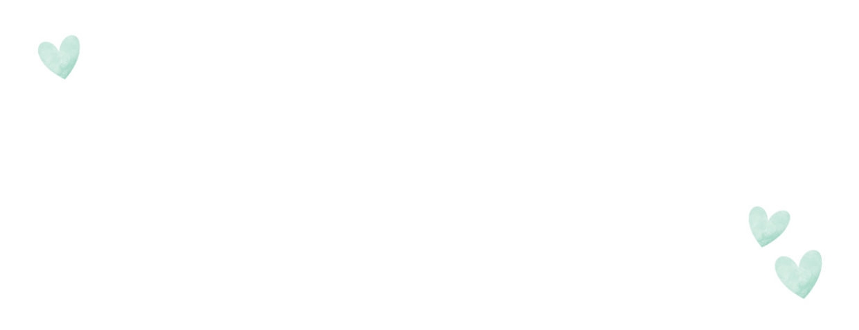 Weißer Adressaufkleber mit drei mintgrünen Herzchen.