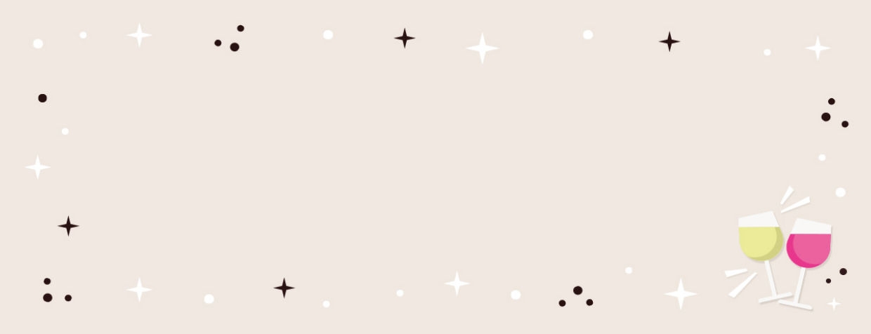 Adressaufkleber in Beige mit Weingläsern und Sternchen.