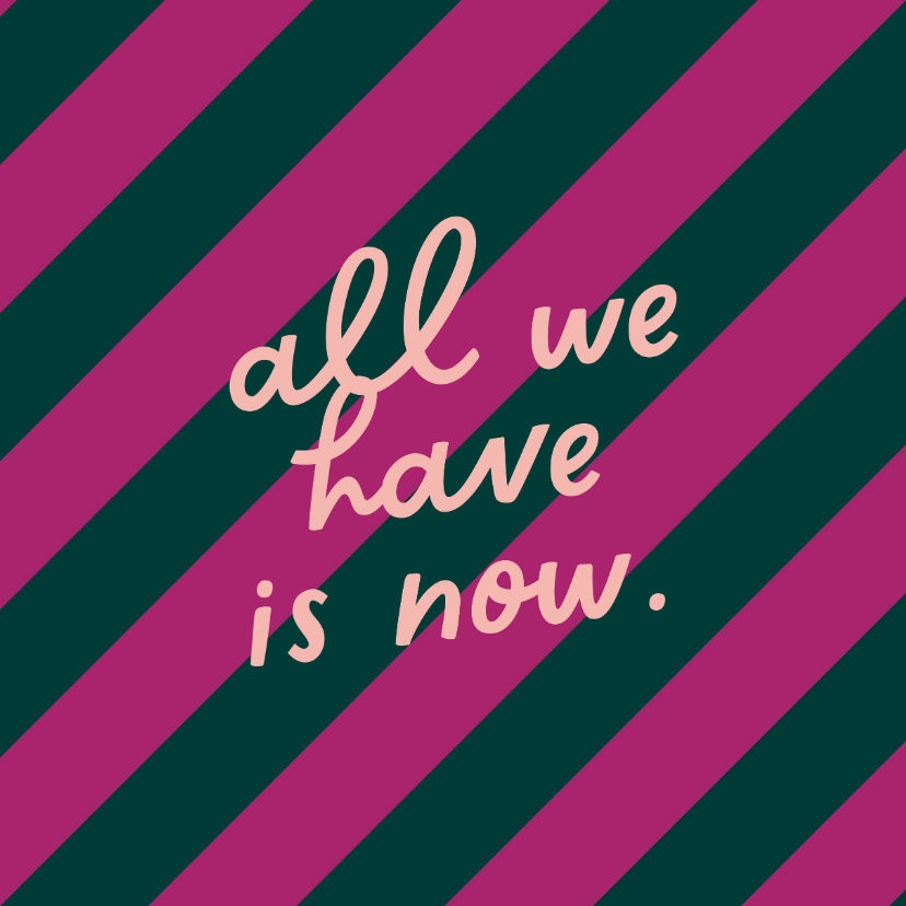 Dekofliese mit englischem Spruch 'all we have is now' mit bunten Streifen.