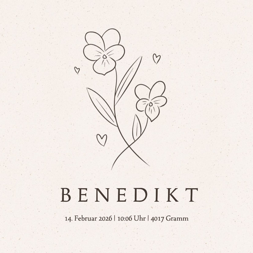 Stilvolle Dekofliese zur Geburt mit Veilchen für den Monat Februar. Nach Wunsch personalisieren.
