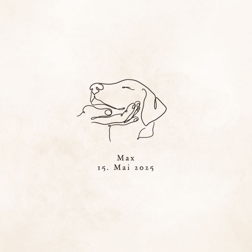 Eine schöne Erinnerung an den geliebten Hund mit feiner Linienzeichnung und eigenen Daten.